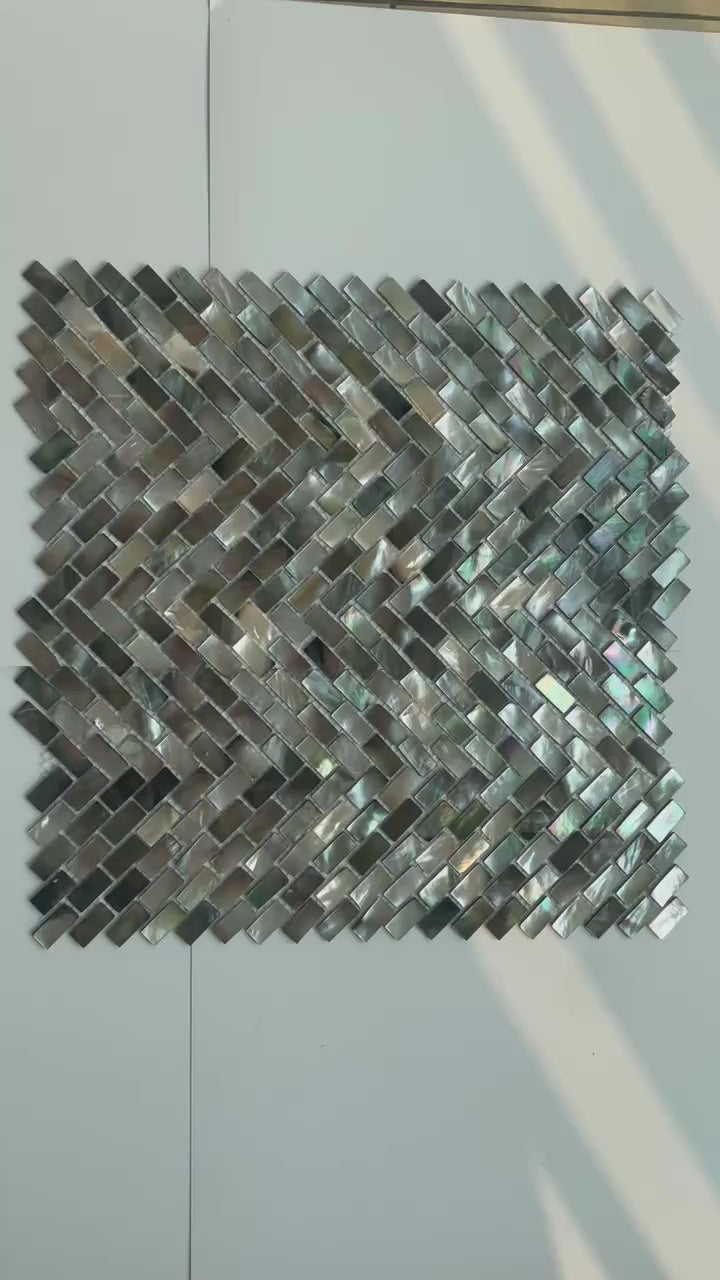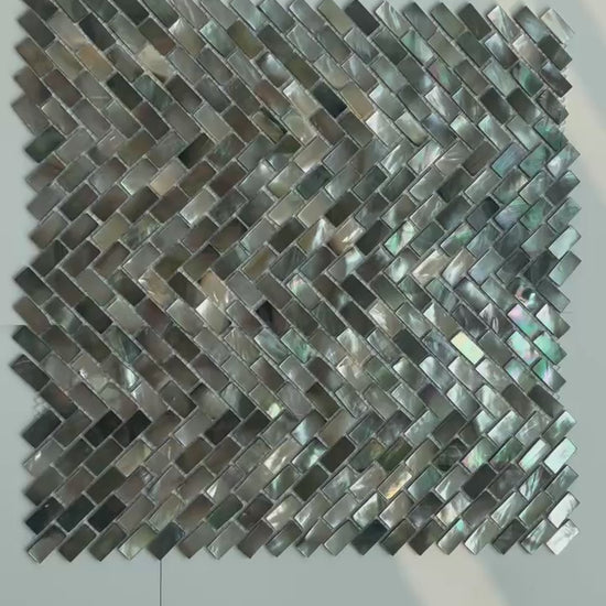 Black Herringbone Mother of Pearl Mosaic Seashell Tile for Bathroom Kitchen and Shower Wall Tile
