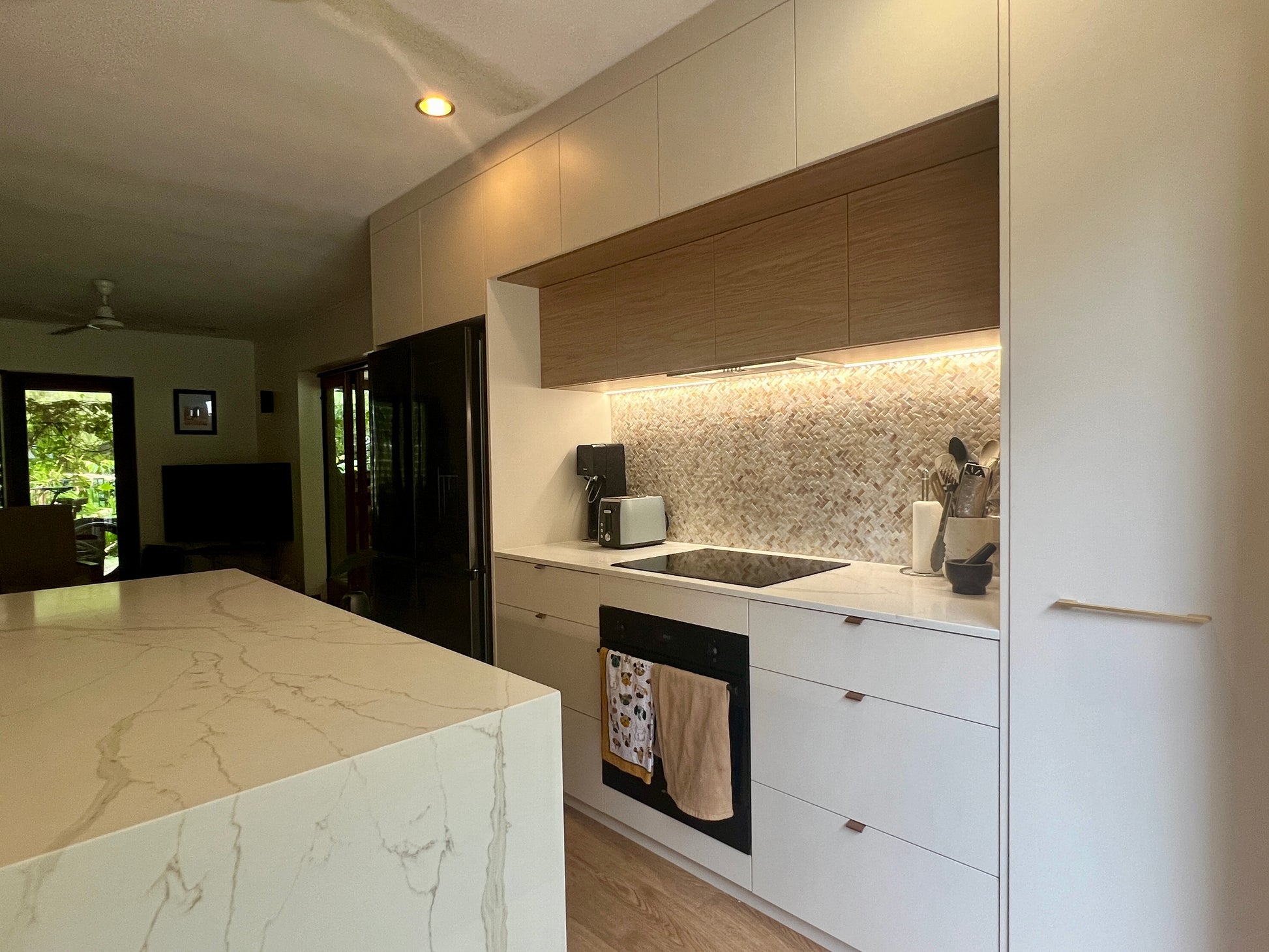 Mesh backer and easy to be installed,Great look for any wall in the house.